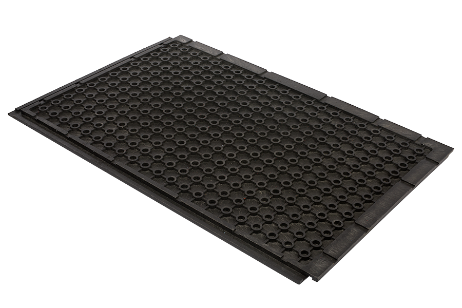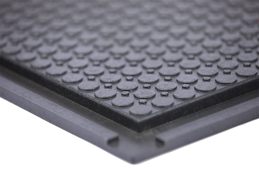 Le matériau recyclé en PVC et la surface structurée offrent une surface antidérapante qui garantit la sécurité antidérapage des collaborateurs et des clients.